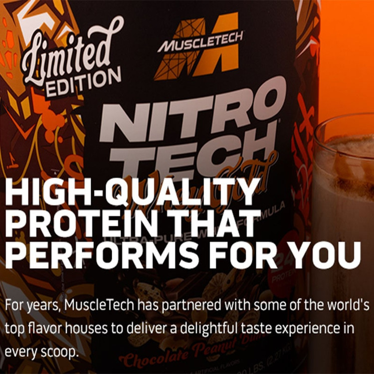 نیترو تچ وی گلد لمیتد ادیشن ماسل تک MuscleTech Nitro-Tech Whey Gold یک فرمول پروتئینی قوی است که با ترکیبی از کنسانتره پروتئین وی، ایزوله پروتئین وی و پپتیدهای وی ساخته شده است. با این حال، آنچه واقعاً Nitro-Tech 100% Whey Gold را متمایز می کند، طعم خارق العاده آن است. طعم دادن به پودرهای پروتئین می تواند چالش برانگیز باشد – مهم نیست چقدر تلاش می کنید، دور زدن طعم کلاسیک وی بسیار دشوار است. MuscleTech با استفاده از ترکیب پروتئین بالا همراه با سیستمهای طعمدهنده و عوامل بافت مناسب، توانسته است طرفداران زیادی پیدا کند.
