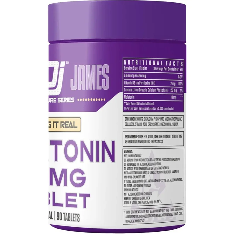مکمل ملاتونین ۱۰ میلیگرم دنیس جیمز (Dennis James Signature Series Melatonin 10 MG Tablet) یک محصول از سری امضای دنیس جیمز است که در دسته نوترالستیک (Nutraceutical) یا مکملهای غذایی قرار میگیرد و توسط شرکتهایی مانند پل نوتریشن (Pole Nutrition) توزیع میشود.