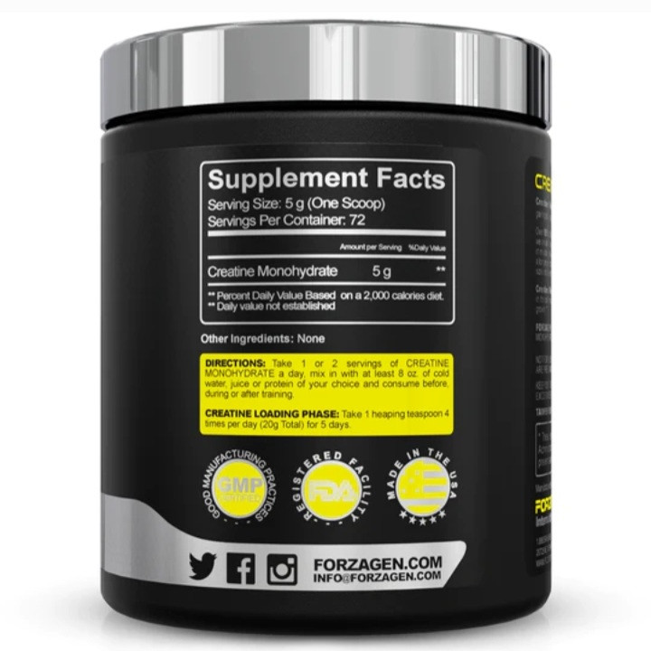 کراتین مونوهیدرات فورزاژن Forzagen Creatine Monohydrate یکی از موثرترین مکمل های غذایی برای افزایش حجم و قدرت عضلانی است که از طعم خنثی برخوردار است. کراتین مونوهیدرات با افزایش احتباس آب در سلول عضلانی عمل می کند. افزایش آب در سلول ممکن است به کاهش تجزیه پروتئین، بهبود ریکاوری و افزایش بیشتر رشد کمک کند. بیش از 95 درصد کراتین در بافت ماهیچه های اسکلتی ذخیره می شود